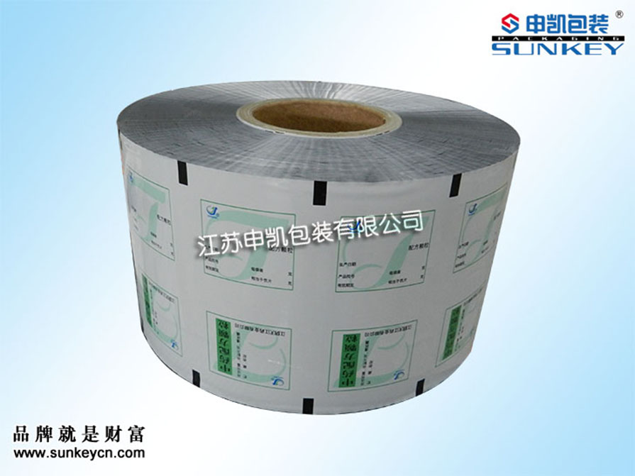 說明:顆粒鋁箔膜材質(zhì)一般是由PET/AL/PE組成,經(jīng)過印刷-檢品-復(fù)合-分切多層工藝。