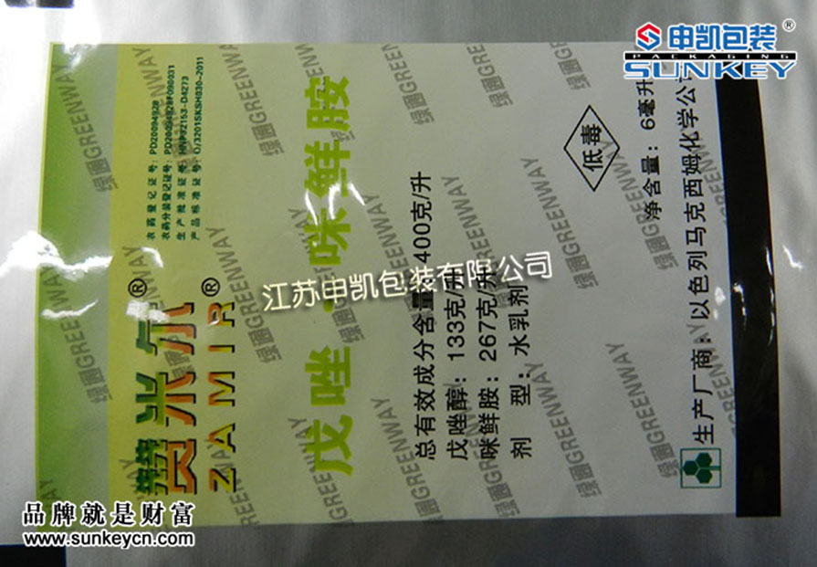 說明:農(nóng)藥鋁箔包裝材質(zhì)一般是由PET/AL/PE組成,經(jīng)過印刷-檢品-復合-分切多層工藝。(農(nóng)藥復合卷膜我們有專門的研發(fā),根據(jù)包裝的產(chǎn)品不同經(jīng)過測試選定包裝)